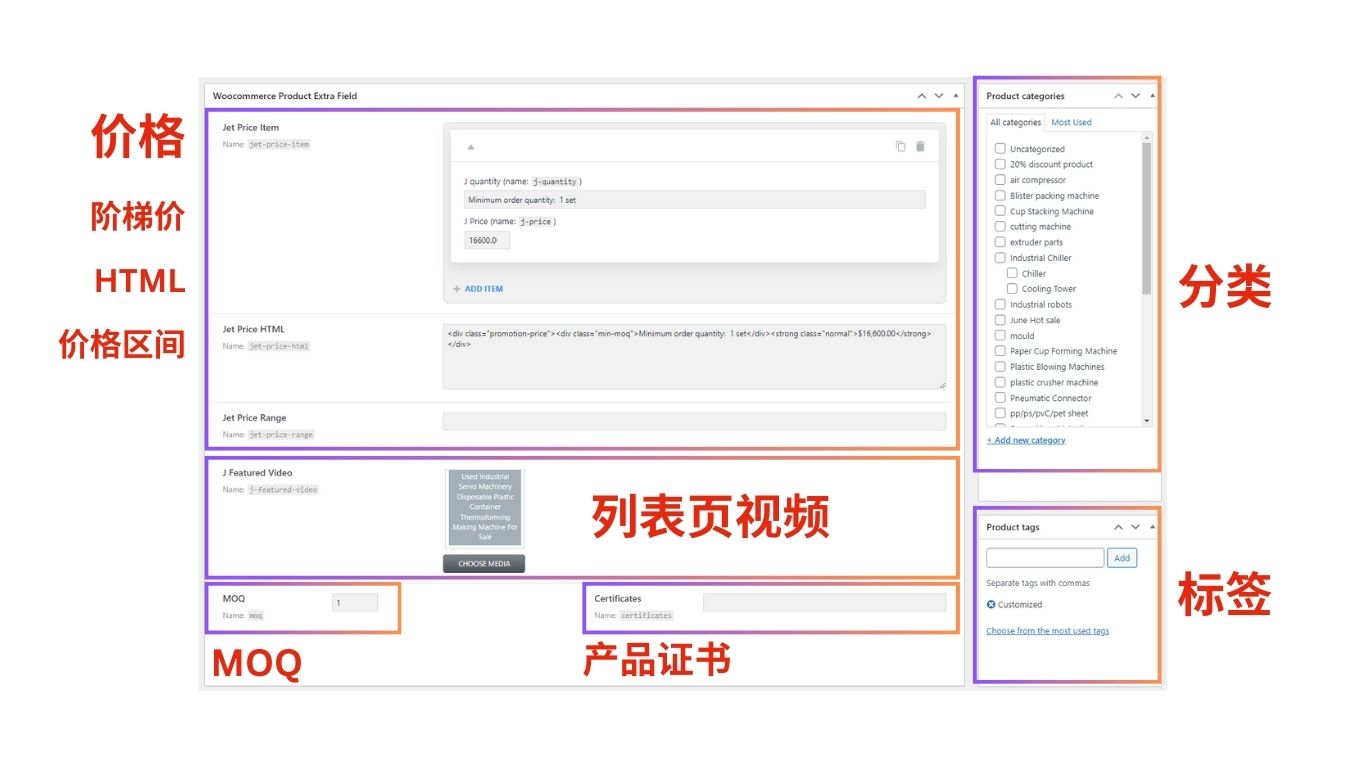 - 设置产品分类与产品标签,以便按产品分类与产品标签快速筛选产品