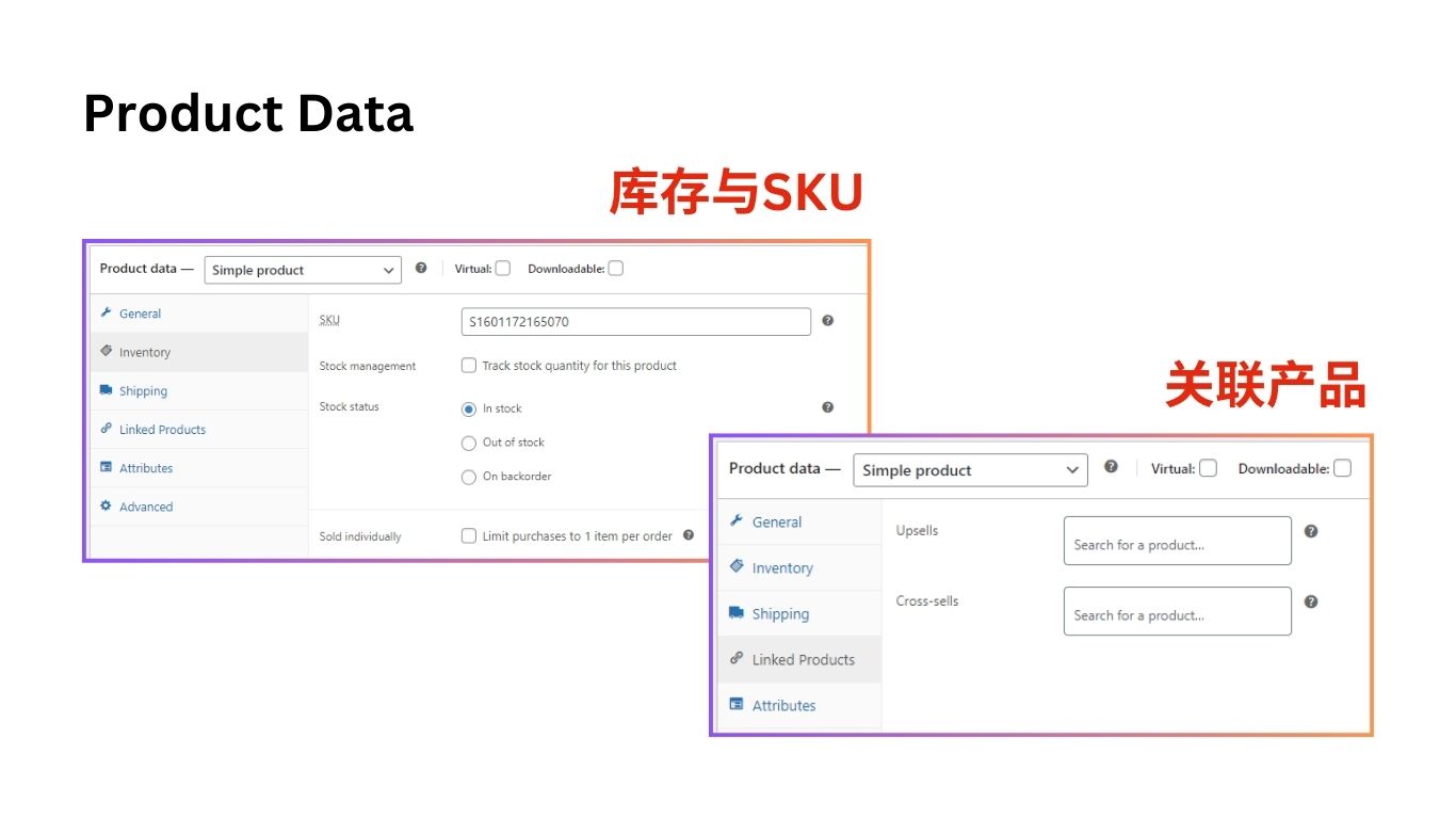 设置产品SKU、库存状态、绑定关联产品