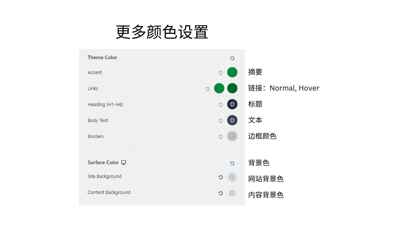为标题、正文、摘要、链接、边框、背景等常用元素设置默认颜色。