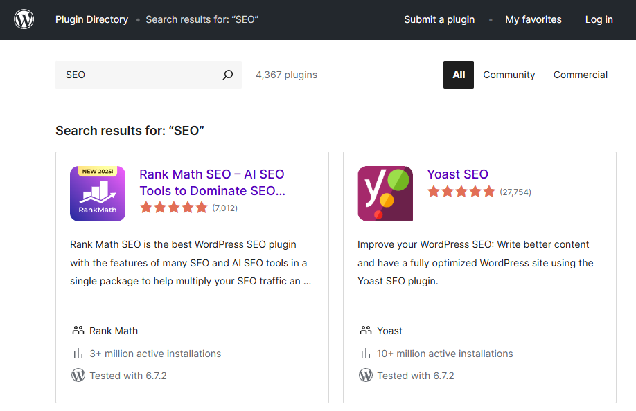相比起SaaS建站公司提供的勉强实现从无到有的SEO功能,在Wordpress官方插件库搜索SEO,相关插件超过4000款。其中,排名前三的头部SEO插件,安装量高达千百万。这些优秀的SEO插件还在互相竞争中保持每周更新迭代,确保用户始终能够使用最先进的SEO技术。