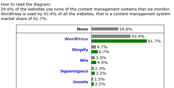 - 大量深度定制站点隐藏了WordPress标识,实际占比可能更高。